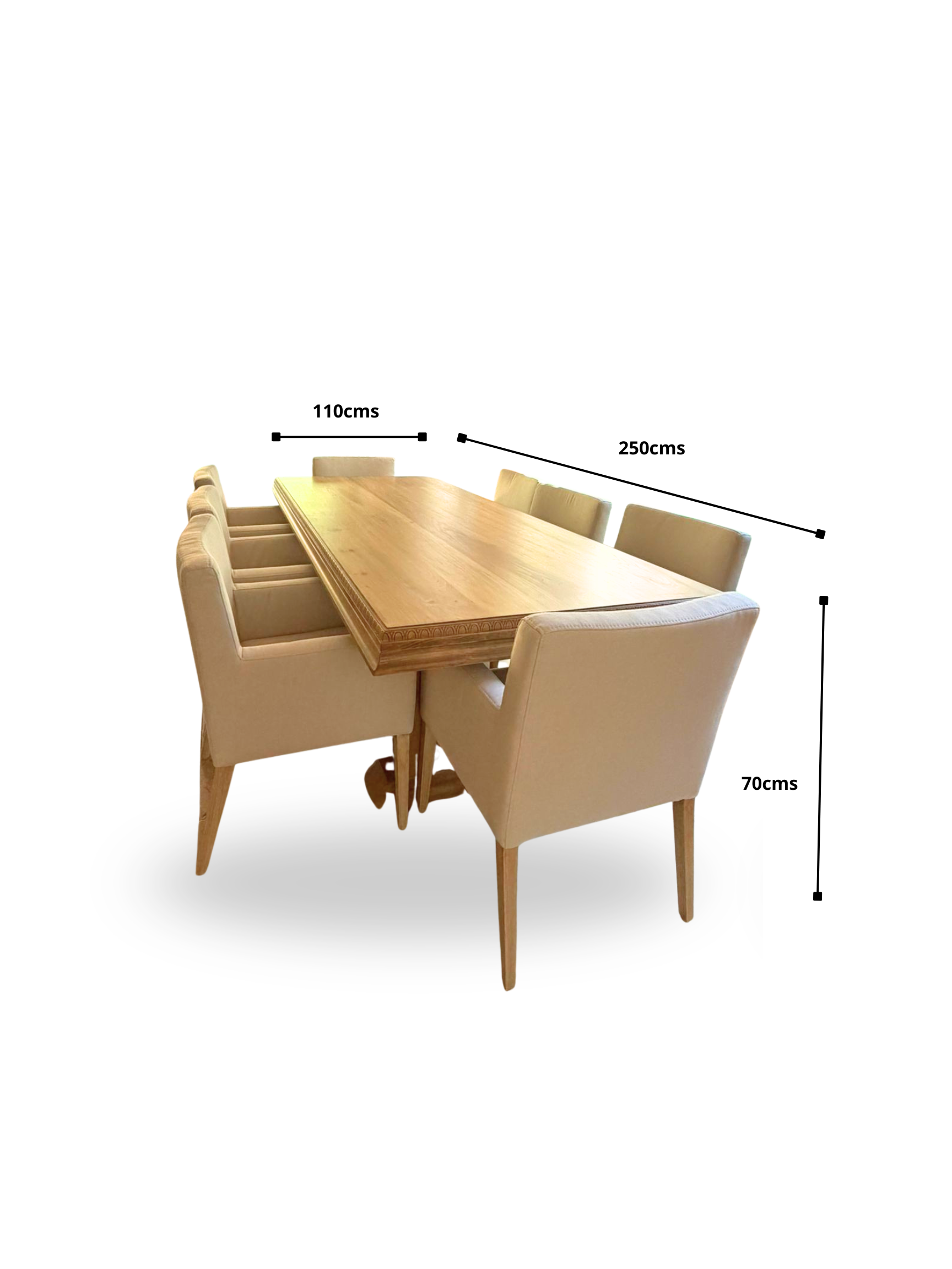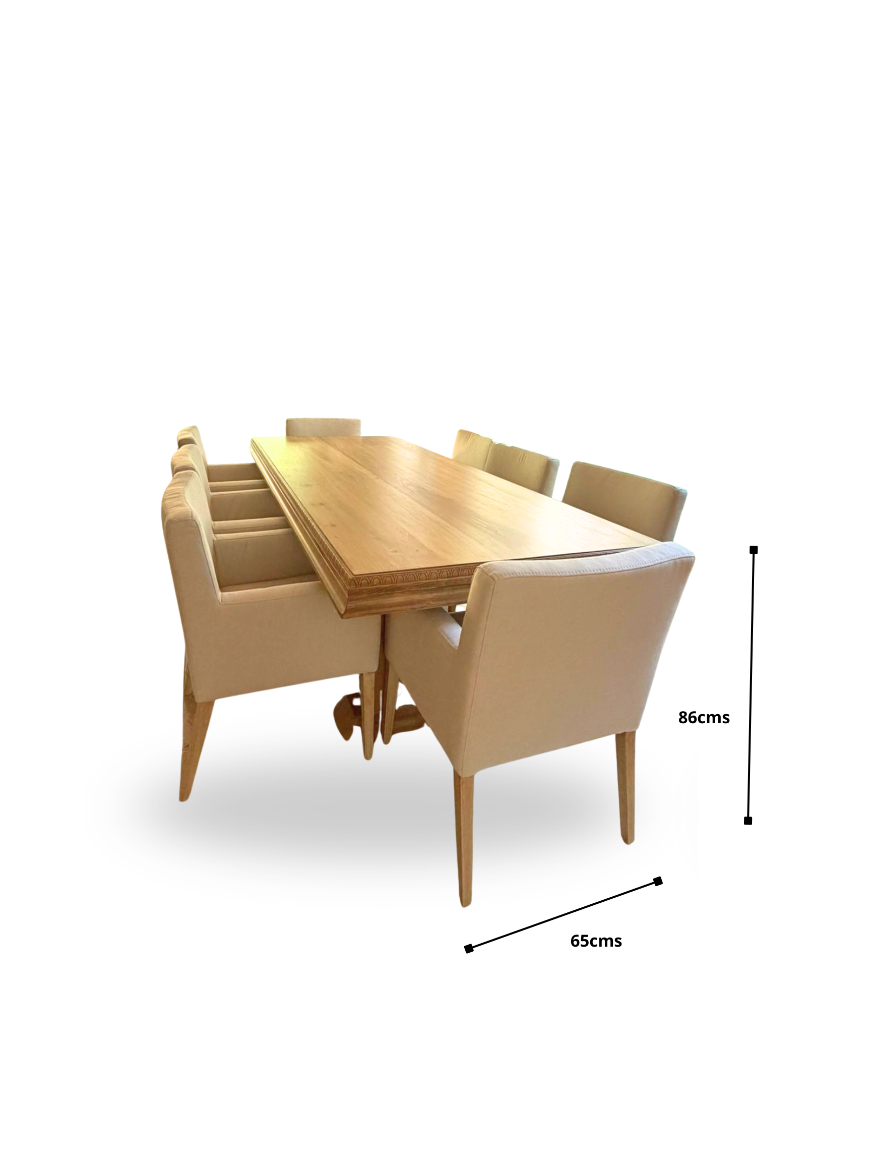 Comedor Completo para 8 personas. Fabricado en madera maciza de alta calidad, este comedor combina elegancia y durabilidad. Su diseño sofisticado y acabados finos lo convierten en el centro ideal para reuniones memorables y espacios con estilo.